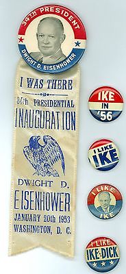 Title (ebay affiliate link): 5 Vintage 1950s President Dwight D Eisenhower Political Pinback Buttons 53 56