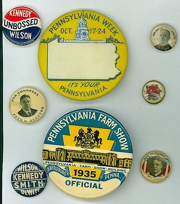 Title (ebay affiliate link): 8 Vintage 1930s Pennsylvania Locals Political Campaign Pinback Buttons Farm Show