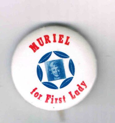 MURIEL HUMPHREY FOR FIRST LADY PIN, HUBERT HUMPHREY'S WIFE PINBACK BUTTON a555