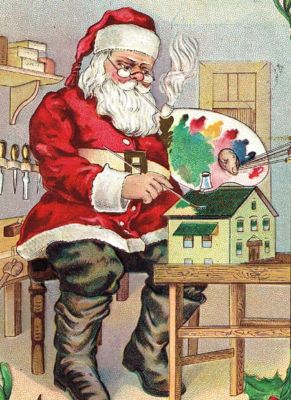 1914 Antique ARTIST RED SUITED SANTA DOLL HOUSE A2039