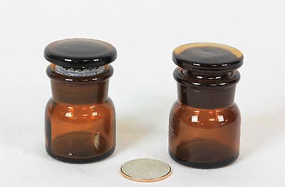 Two Antique Small Amber Pharmacy Bottles Dentist Amalgam Mercury Glass Stopper