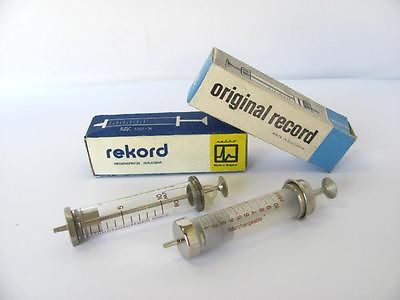 TWO VINTAGE MEDICAL BOXED GLASS & BRASS SYRINGES