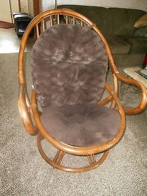 Mid-Century Bamboo Rattan Swivel Rocking EGG Chair Medium Wood Tone w/Cushion