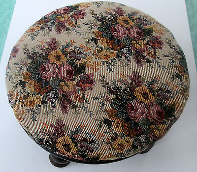 Title (ebay affiliate link): Antique Vtg Round 5-Legged Wooden Footstool with Upholstered Padded Top