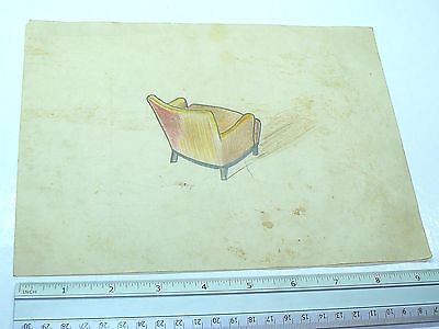 Vintage antique Hungarian architectural furniture design sketch 1930's