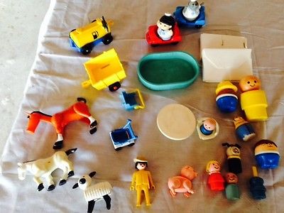 Vintage lot of childrens toys Playmobile, Fisher Price, people, pool, dog