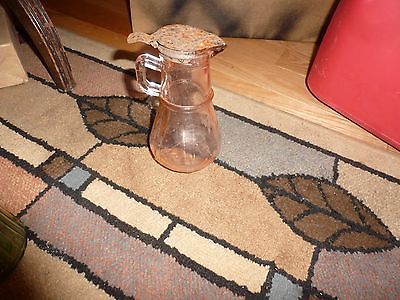 Pink Depression Glass Syrup Pitcher -Tin Cap - Works Easily
