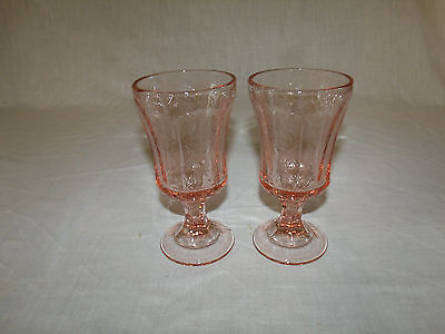 (2) MADRID Recollection Pattern PINK Indiana Glass WINE GOBLETS 6 5/8" tall