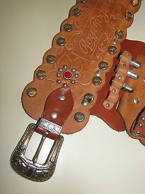 Title (ebay affiliate link): VINTAGE ROY ROGERS HOLSTERS, ORNATE TOOLED LEATHER, CONCHOS, DOUBLE R BAR STUDS