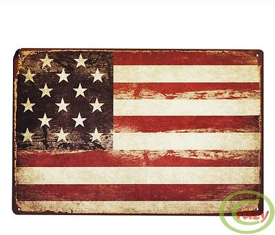 Title (ebay affiliate link): USA American Flag Stars Embossed Retro Metal Tin Sign Pub Bar Wall Decor 12"x8"