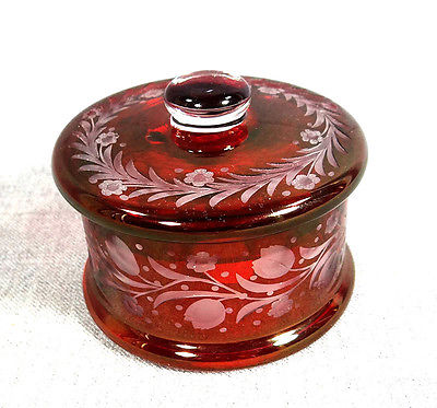 Title (ebay affiliate link): Art Deco Tyrol Austria Cut Ruby Red Crystal Glass Powder Jar Candy Box Bowl Dish