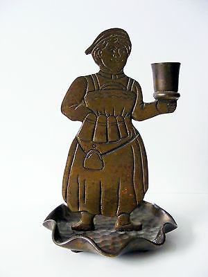 Title (ebay affiliate link): Antique Arts and Crafts Engraved Hammered Metal Figural Woman Candle Holder