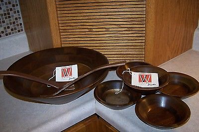 Butcher Block Vermillion Walnut Salad Bowl Set 8 Pc