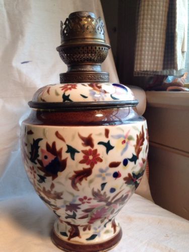 Beautiful Antique Floral Chintz Porcelain Oil Kerosene Lamp