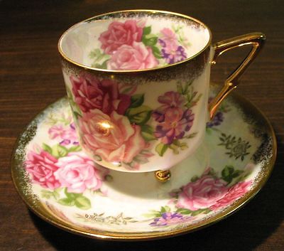ROYAL HALSEY L&M FOOTED CUP AND SAUCER, ROSE PATTERN