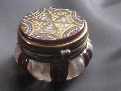 Delightful VICTORIAN hand painted Cranberry Panelled GLASS RING BOX