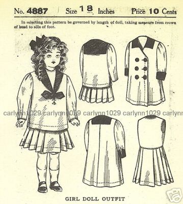 Antique 1908 18" Doll's Sailor Dress & Coat Pattern