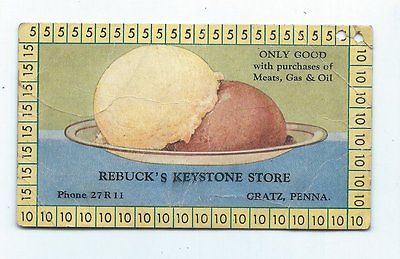 1930s's ADVERTISING TRADECARD REBUCK'S KEYSTONE STORE, ICE CREAM, GRATZ. PENNA
