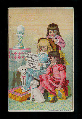 Mama, Daughters & Their 2 White Dogs-Victorian Trade Card-Ball's Corsets