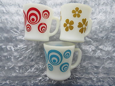 3 Old Retro Fire King Milk Glass Coffee Mugs Spirals Daisy