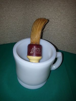 Antique White Milk Glass Shaving Mug With Brush Red Bottom on Brush