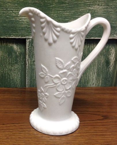 Vintage Milk Glass, Pitcher, Flower Pattern