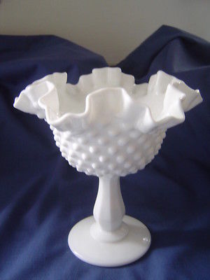 Title (ebay affiliate link): FENTON Milk Glass Hob Nail Ruffled and Stemmed Candy Dish or Compote 6"