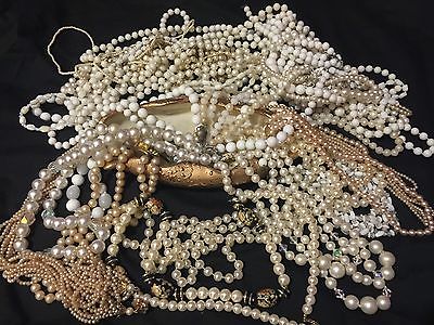 Vintage Estate Faux Pearl, Milk Glass, Glass, Flapper, Seed Bead Lot Huge