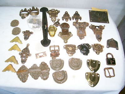 Title (ebay affiliate link): Vintage trunk Hardware/Latches/a leather Handle/etc.