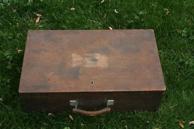 Title (ebay affiliate link): ANTIQUE WOOD SUITCASE TRUNK BOX W/ WOOD HANDLE STORAGE