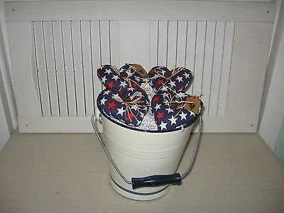 Primitive Fabric Bowl Fillers Hearts,w/Rusty Bell, Taffeta Tie,Tag Set of 4