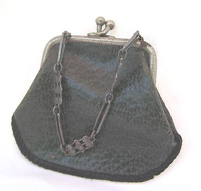 Vtg Leather Doll Purse Metal Frame Chain Handle Grapes Design for Antique Doll
