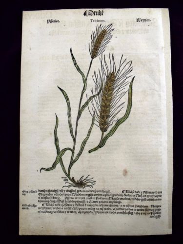 1562 Gio LIBERALE Matthioli - WHEAT - EXQUISITE FOLIO handcol WOODCUT - INITIAL