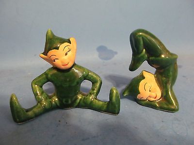 Title (ebay affiliate link): 2 Vintage Ceramic Porcelain Pixie Elf Figurine in Green Suits
