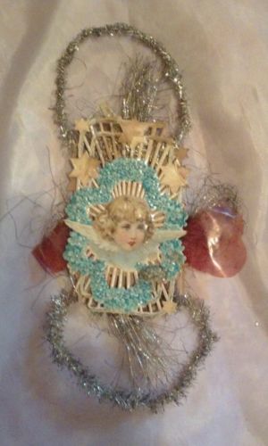 Title (ebay affiliate link): Antique Victorian Christmas scrap and tinsel ornament
