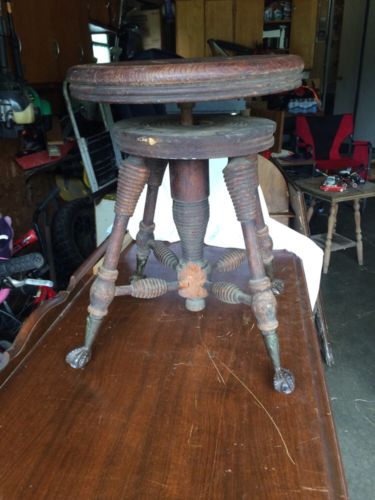 Title (ebay affiliate link): Antique Mahogany Piano Stool W Glass Ball and Claw Feet~Swivels See Desc