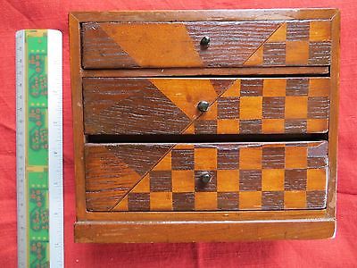 TRAMP ART/primitive mini wooden CHEST of drawers/bureau HANDMADE antique