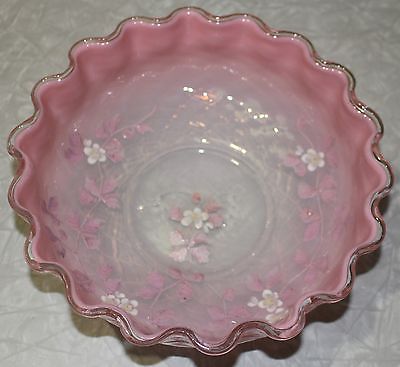 Antique pink opalescent case art glass enameled cherry blossom brides bowl