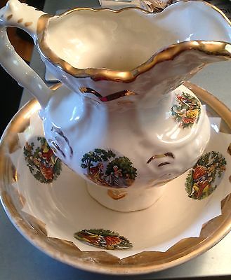 Vintage Colonial Neo-Washingtionian Design Pitcher and Basin, Gold trim