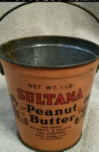 VTG 1940s Sultana Peanut Butter Advertising Tin Can Pail