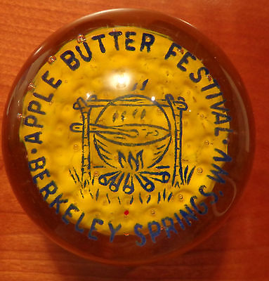 Title (ebay affiliate link): Millville Art Glass Paperweight - Apple Butter Festival, Berkeley Springs, WV