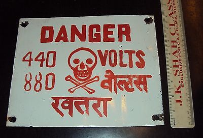 Vintage Advertising Porcelain Enamel Sign DANGER 440 VOLTS RARE