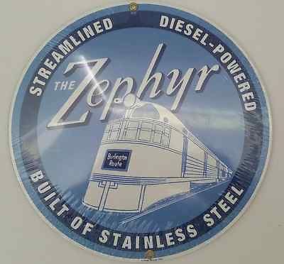 Zephyr Porcelain Sign NEW Railway Train Burlington Route by Ande Rooney 10" Diam
