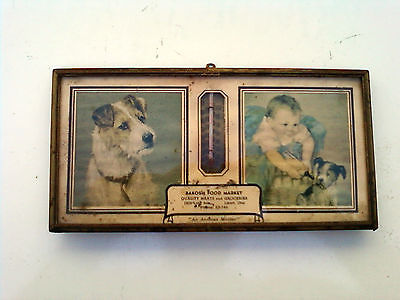 VINTAGE BAKOSH FOOD MARKET THERMOMETER ADVERTISING SIGN LORAIN OHIO DOGS BABY