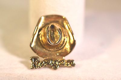 Vintage Gold-tone Ronald Reagan Lapel Pin with Cowboy Hat MINT !