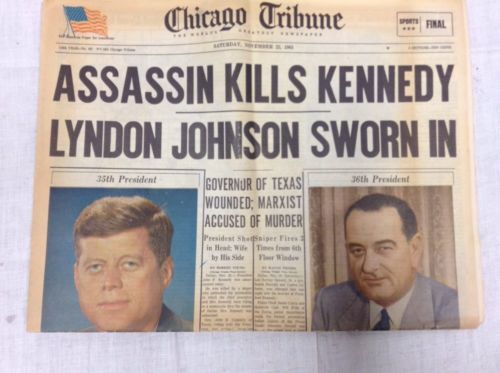 Title (ebay affiliate link): Chicago Tribune Sat,,Nov 23--Headline--Assassin Kills Kennedy