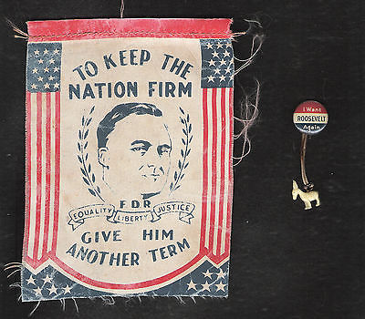 Title (ebay affiliate link): 2 FDR Franklin D. Roosevelt 1940s campaign items: cloth flag, pin w/donkey