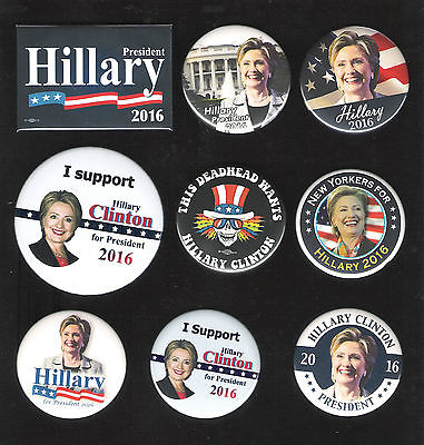 Title (ebay affiliate link): 9 different HILLARY CLINTON 2016 Presidential hopeful campaign buttons