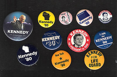 Title (ebay affiliate link): 11 different EDWARD Ted KENNEDY Presidential hopeful campaign buttons 1972, 1980