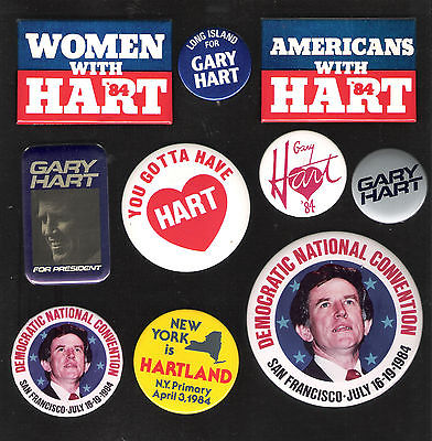 10 unusual GARY HART (D-CO) Presidential hopeful campaign buttons 1984